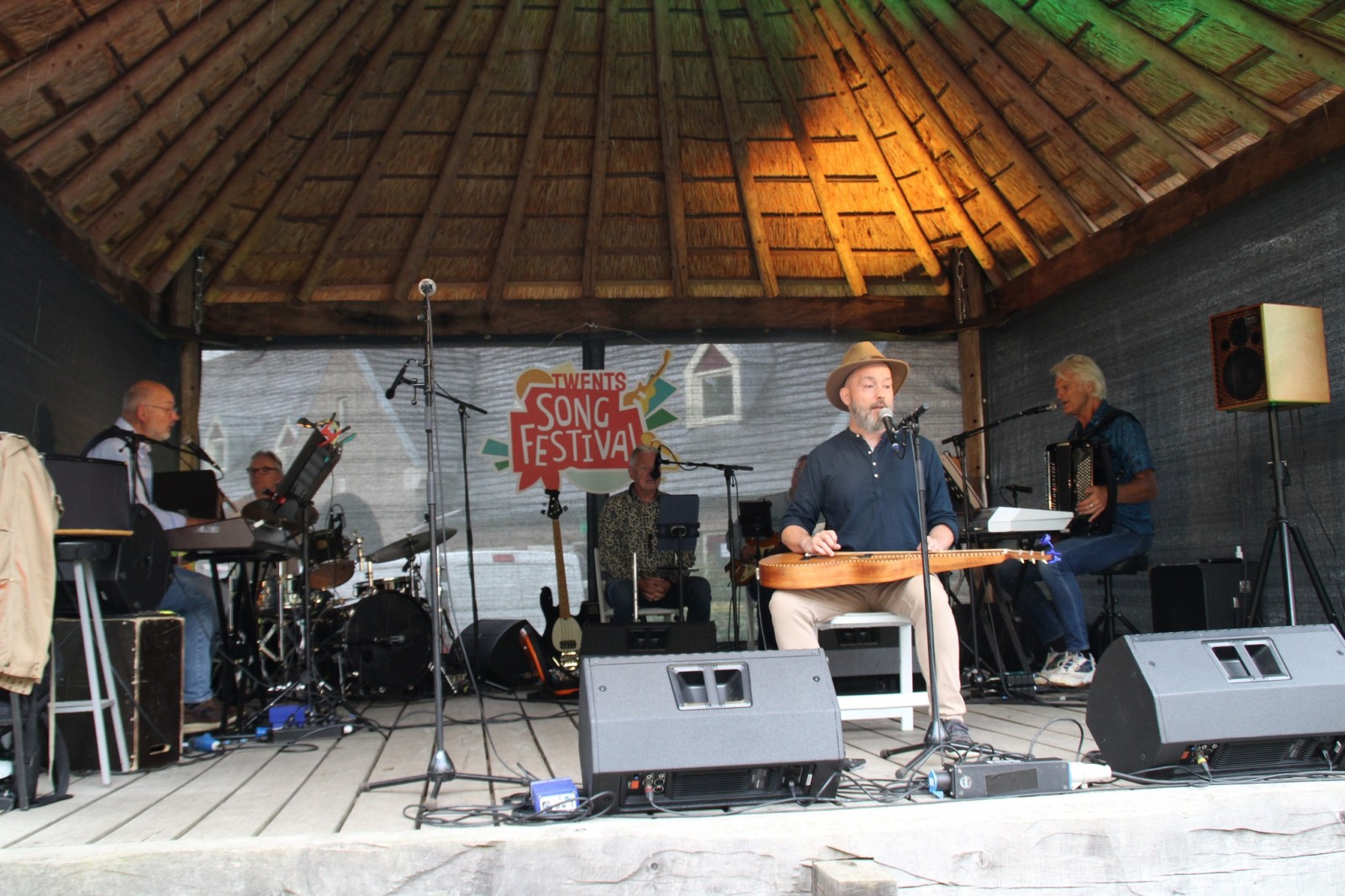 Erwin Nijhoff de gastartiest maakte het Twents Songfestival helemaal af. Met de neerdalende regen bleef het trouwe publiek luisteren naar zijn inbreng en waardeerde dit niet alleen met een ovationeel applaus, maar ook door luidkeels mee te zingen met bekende liederen en als het moest met oeh’s en aah’s. Een prachtig optreden wat naadloos paste in deze sfeer, die het Twents Songfestival kenmerkt. Zijn slotnummer ‘Laat me’ van Ramses Shaffy werd luidkeels meegezongen door het enthousiaste publiek. Een lied wat helemaal hoort bij dit evenement. Geen kapsones, doen waar je goed in bent en genieten van wat er gebracht wordt. ‘Laat me’ laat dit Twents Songfestival zichzelf blijven zijn. Dan heeft het een blijvend bestaansrecht.